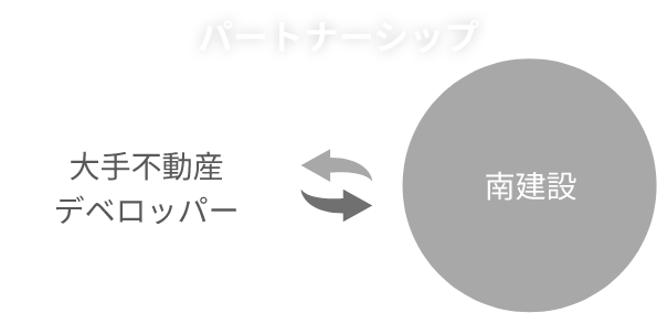 また「いい会社」になれば離職率も確実にゼロに近づきます。私たちのプロを養成するための教育制度と各種サポートで、未経験の若手をはじめ全従業員が活き活きとキャリアを重ねています。そして「ずっと南建設で働きたい」という従業員たちの社歴の⾧さはデベロッパーの方々から「南建設で10年もやればどんな現場にも対応できる」との高評価につながるものです。